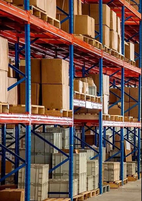 倉庫貨架立柱為藍色,主要起承重和固定作用,橫梁為橘黃色,主要起承載托盤的作用。藍色是非常沉穩(wěn)的顏色,具有緩解焦躁的作用,有效降低作業(yè)人員在重復(fù)的操作中可能形成的疲勞感;而橘黃色是非常醒目且活躍的顏色,有著讓人積極快樂、增強活力的功能,且藍色與橘黃色是對比色,在叉車工作時能很好地辨識托盤位置,準確碼放貨品,保障貨品的存取安全。