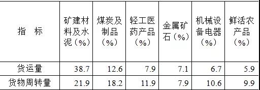 貨運量的主要貨類構成中,“礦建材料及水泥”占比最高,為38.7%;其次是“煤炭及制品”,占比12.6%;“輕工醫(yī)藥產品”“金屬礦石”“機械設備電器”“鮮活農產品”等貨類次之,占比分別為7.9%、7.1%、6.7%和5.9%。